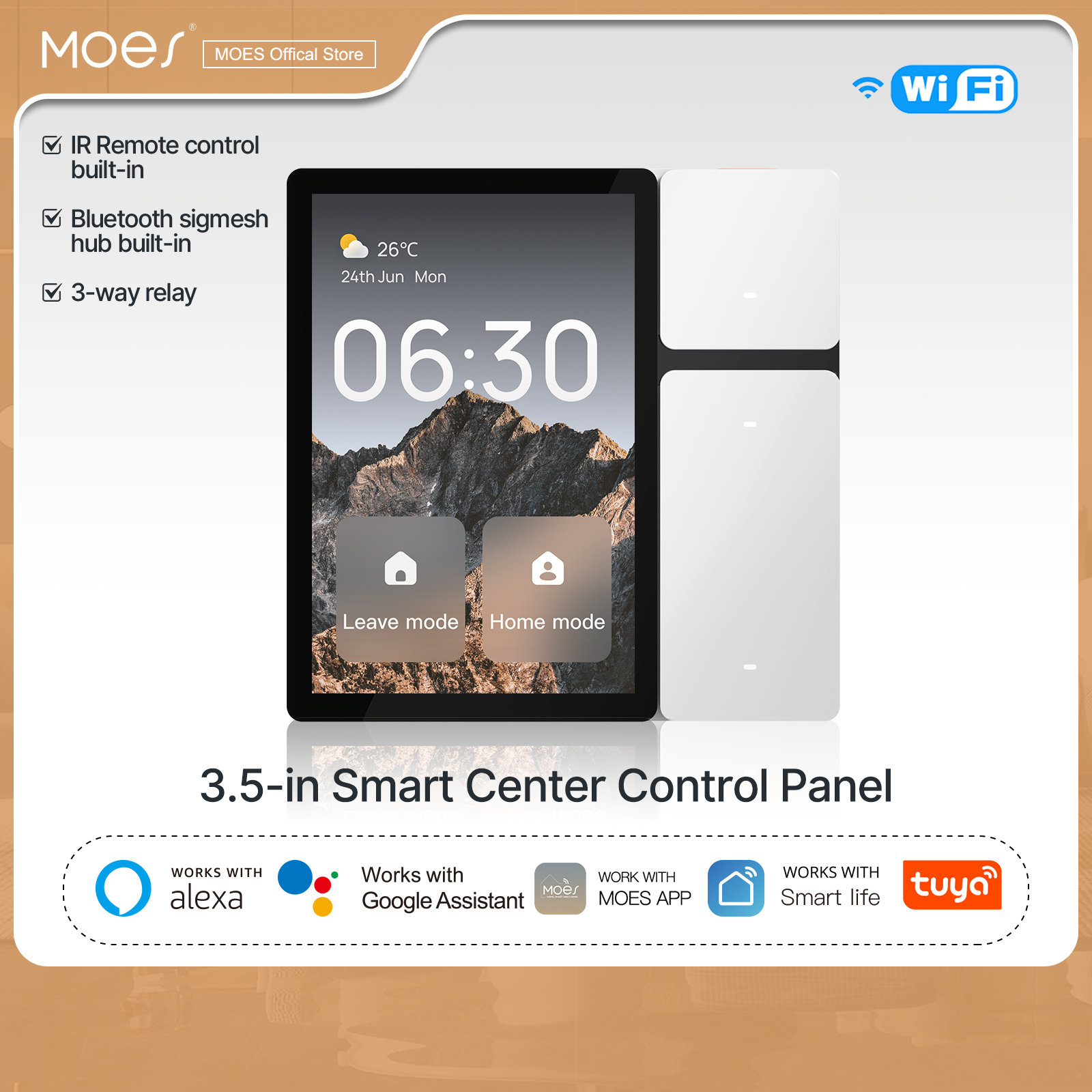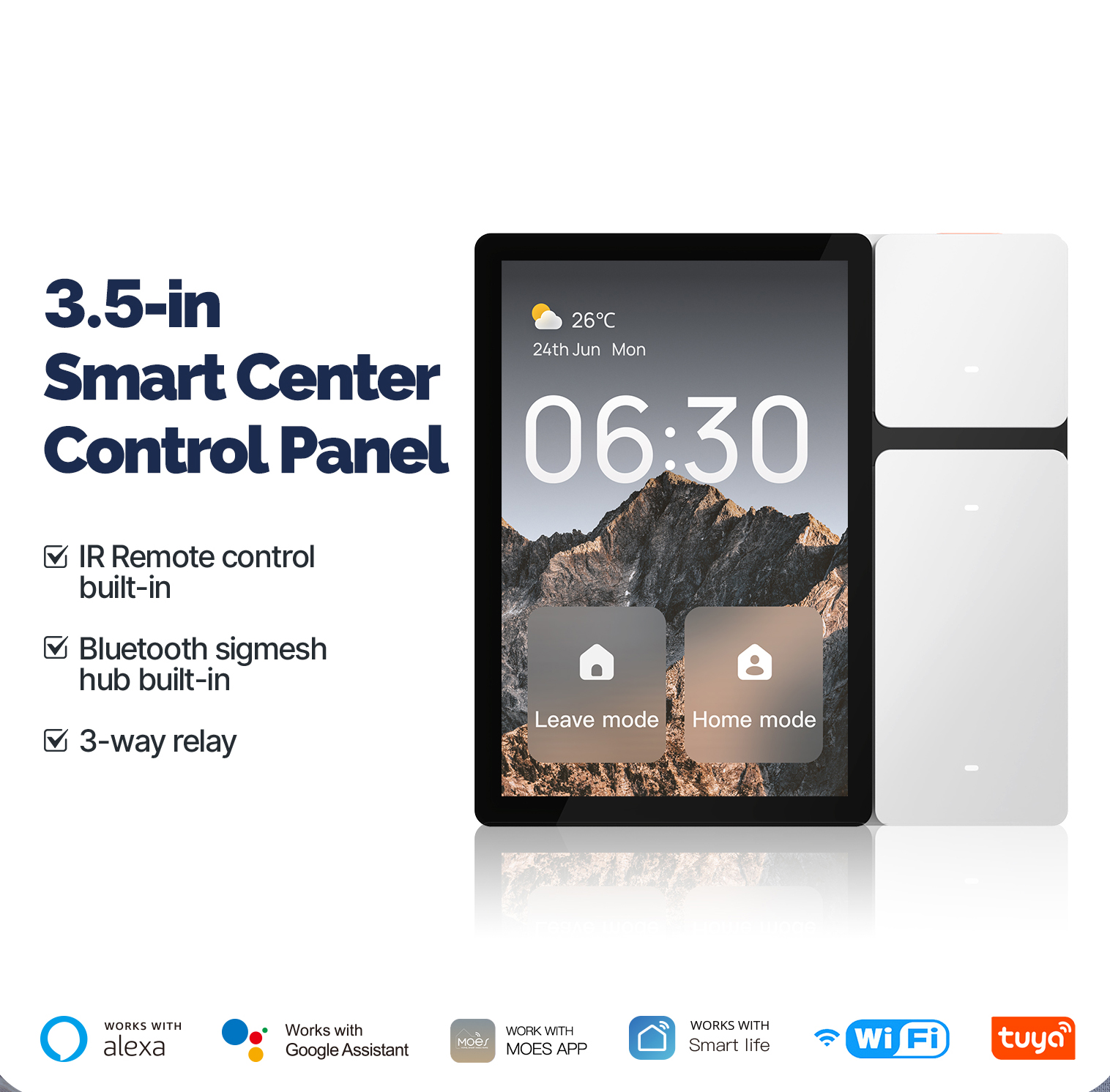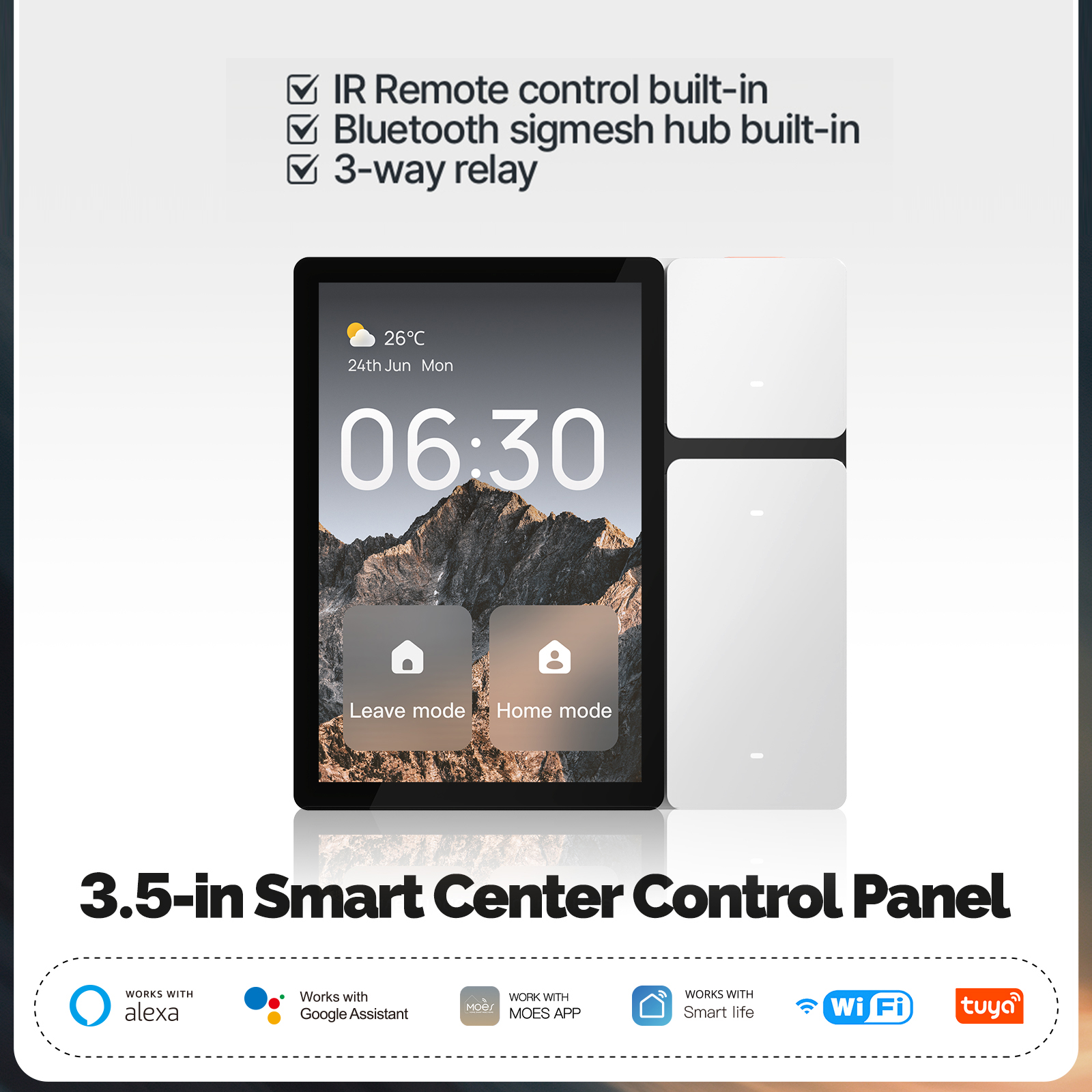 Security Tuya 3.5 Inch Touch Screen Smart Home Panel Built-in Ir Remote Control+Bluetooth Sigmesh Hub+3 Gang Switches