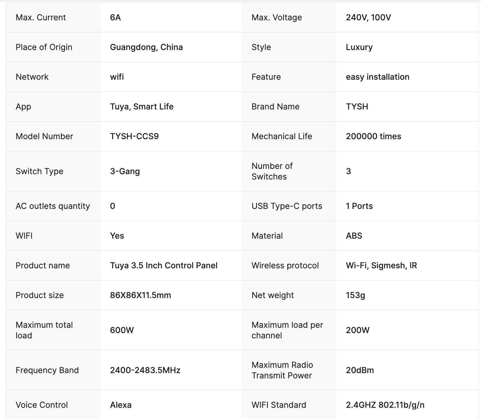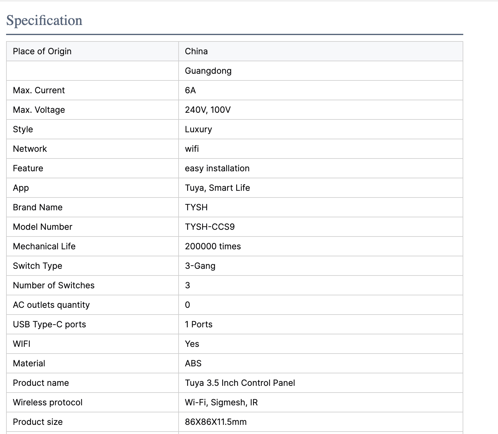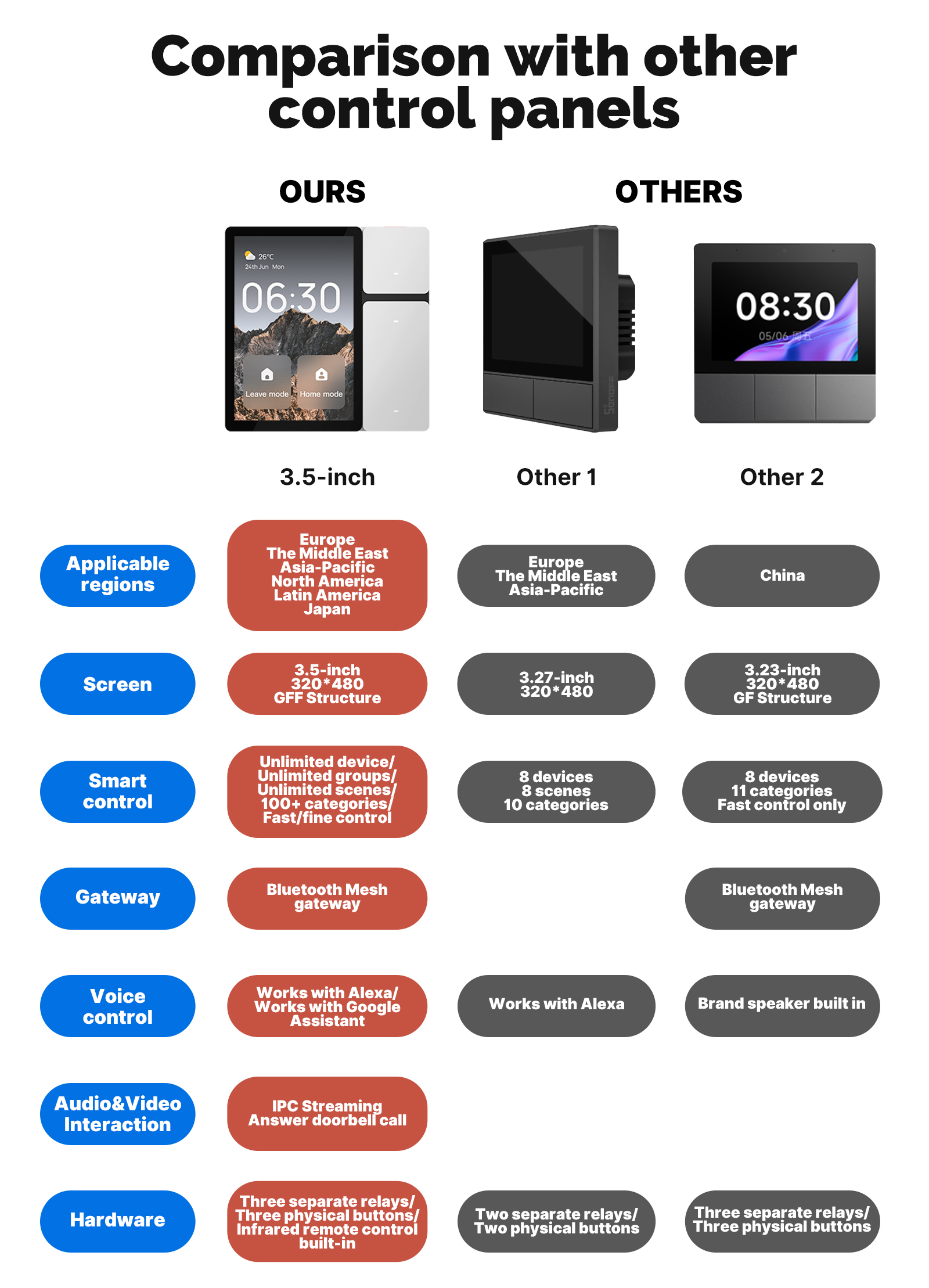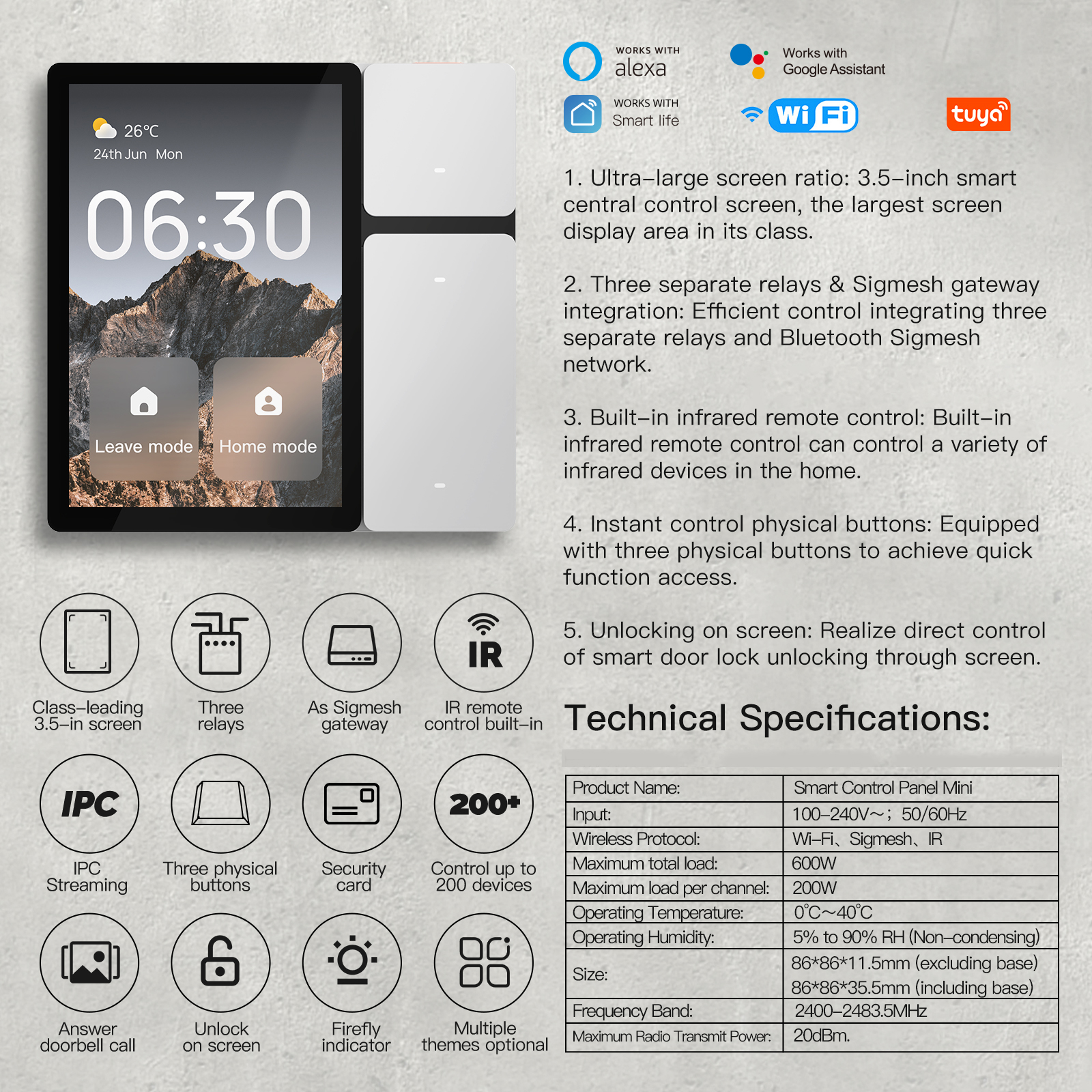 Security Tuya 3.5 Inch Touch Screen Smart Home Panel Built-in Ir Remote Control+Bluetooth Sigmesh Hub+3 Gang Switches